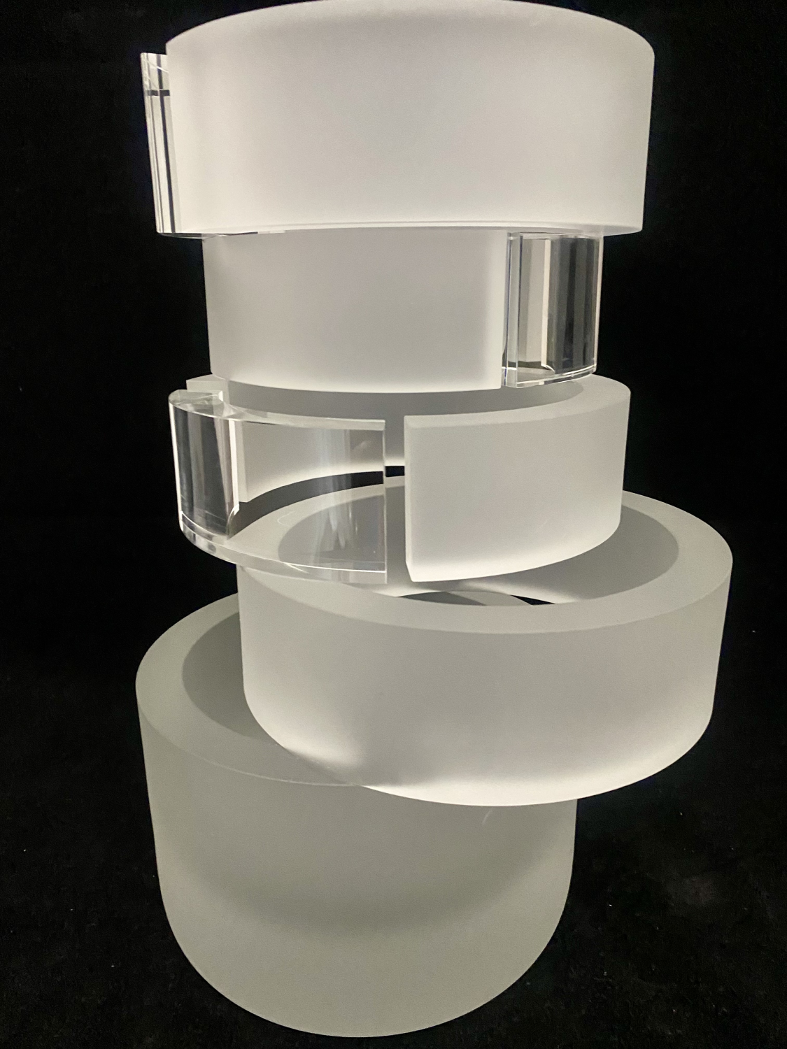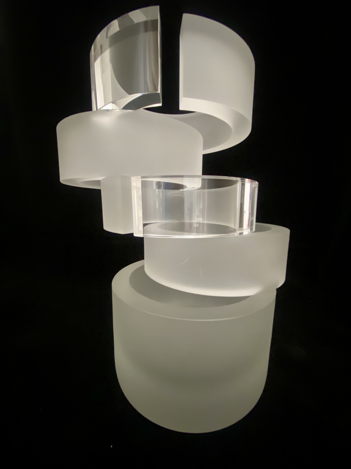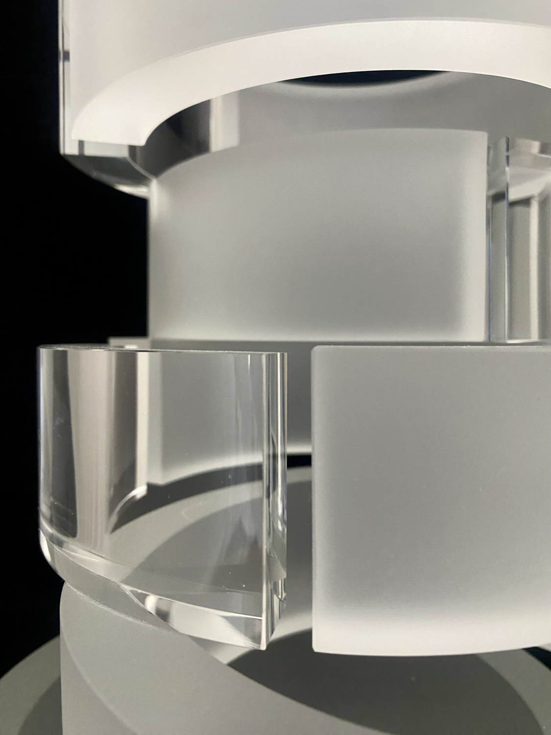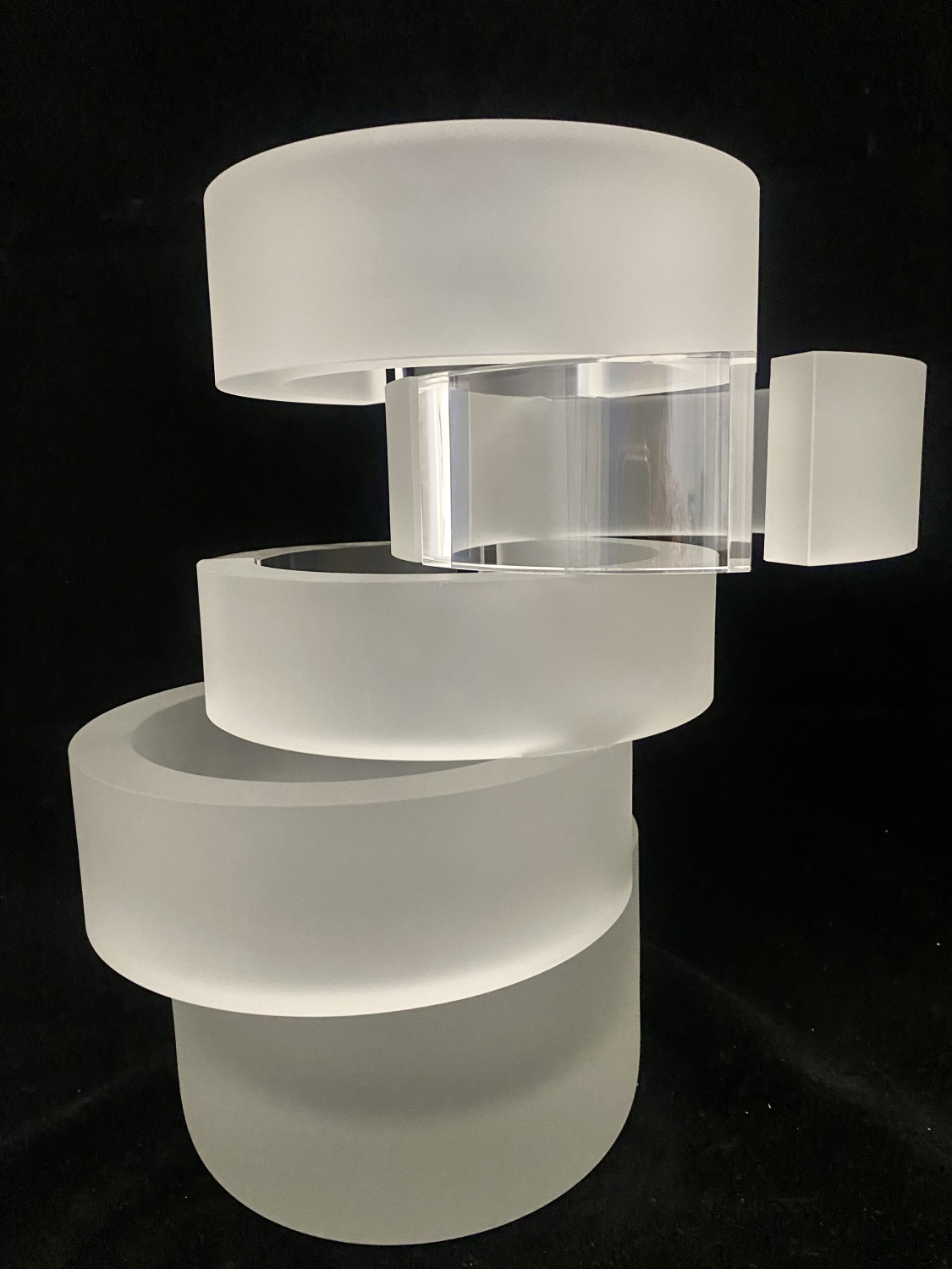 Objekt funguje jako optická architektura, v níž se světlo láme, rozptyluje a vytváří vnitřní prostorovou hloubku. Malivánek zde pracuje s kontrasty mezi hmotou a průhledností, mezi klidem tvaru a proměnlivým světelným efektem, čímž dosahuje téměř iluzivního účinku. Výsledná forma působí minimalisticky, přesto je mimořádně živá – s každou změnou světla či pohledu diváka se mění i samotný charakter díla.