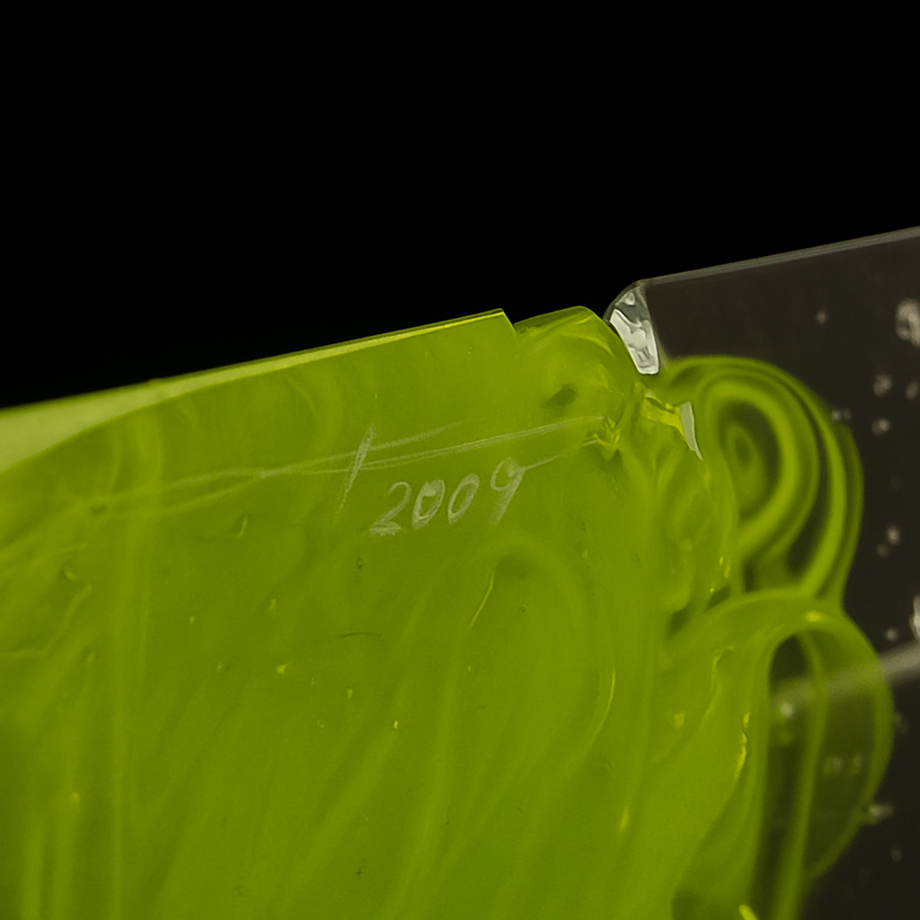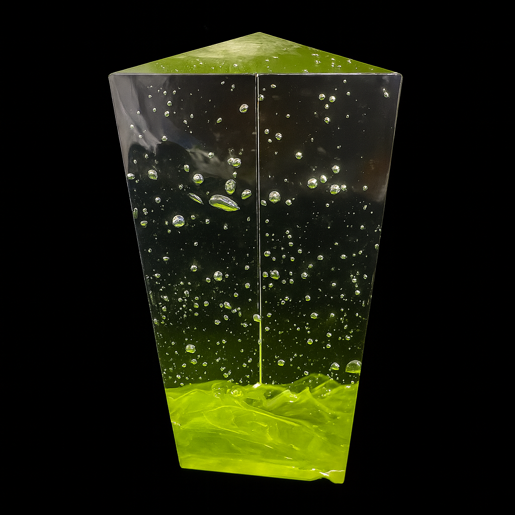 Tato originální skleněná plastika od Karla Malivánka představuje vrchol současného českého ateliérového skla. Dílo je vytvořeno z hutního skla nejvyšší kvality, ručně broušeno a leštěno do dokonalé formy. Každá plocha je precizně opracována tak, aby odrážela a lámal světlo v proměnlivých úhlech, což z plastiky činí neustále se měnící vizuální zážitek.Barevné akcenty, umně uzavřené uvnitř skleněné hmoty, působí jako živé – jejich sytost a jas se mění v závislosti na okolním světle. Hra barev a odlesků dodává plastice dojem vnitřního pohybu a energie. Každý pohled odhaluje nové detaily – od jemných přechodů po ostré kontrasty mezi čirými a barevnými částmi.Dílo je ideální volbou pro sběratele, milovníky současného umění i architekty hledající výrazný designový prvek. Může se stát dominantou reprezentačního prostoru, galerií či luxusního soukromého interiéru. Jedinečná signatura a neoddiskutovatelný rukopis autora zaručují nejen estetickou hodnotu, ale i investiční potenciál.